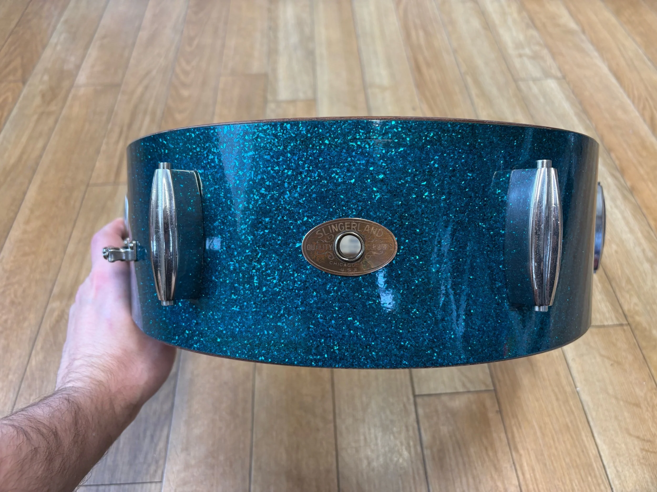 1950s Slingerland 'Bop' 13x4.5" in Aqua Sparkle Pearl