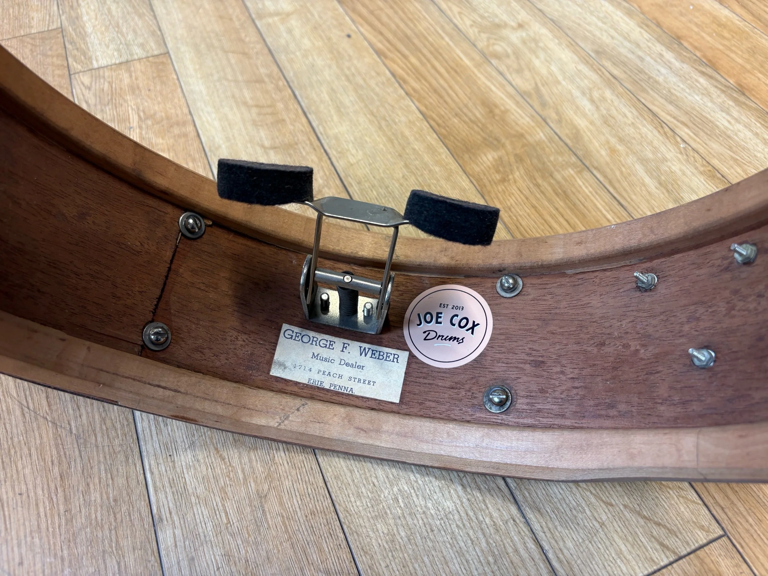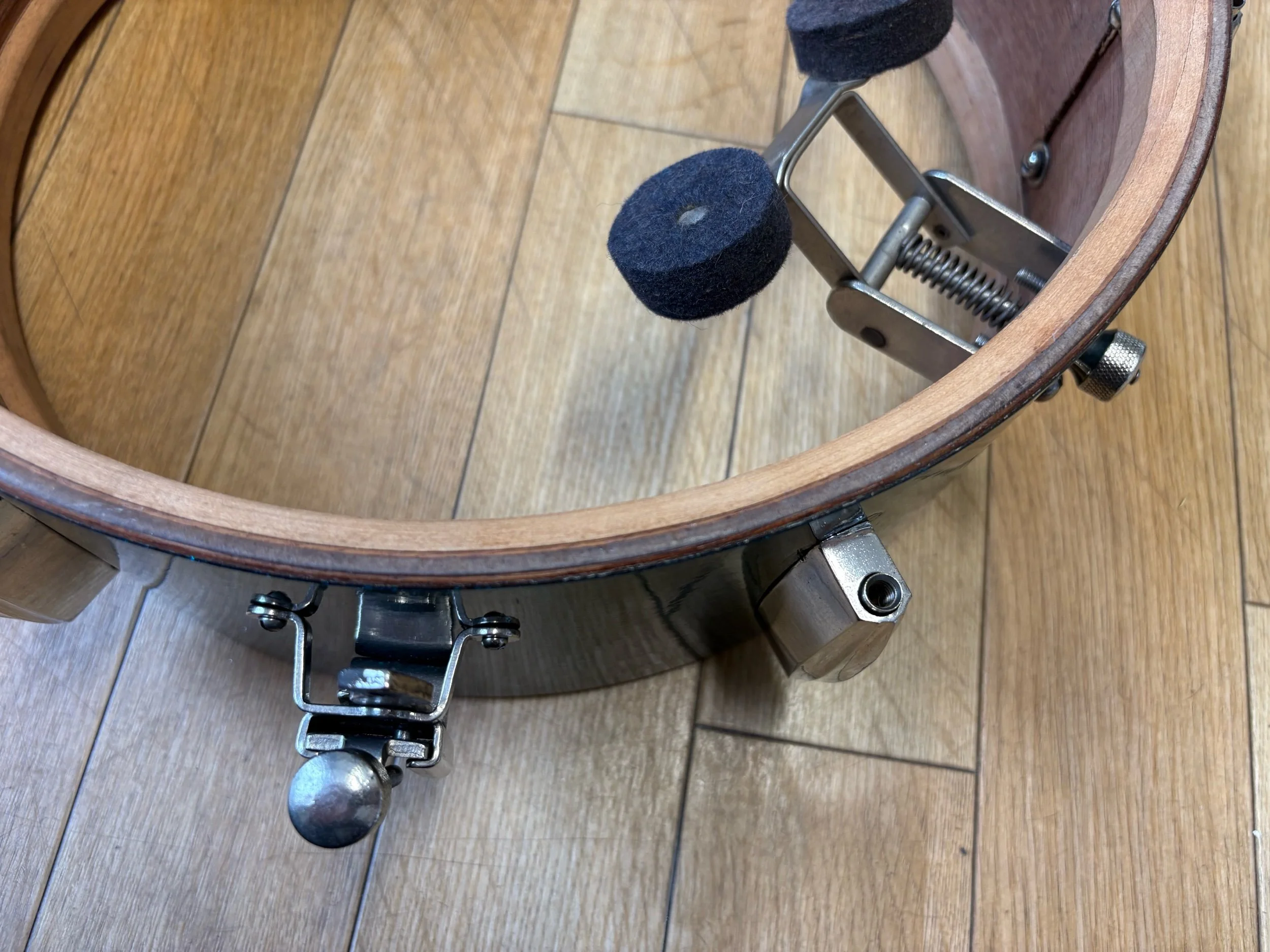 The lugs haven’t been drilled and mounted in the centre of the drum, which means the batter tension rods are dialled in closer than they probably should - because of this, I have switched to modern tension rods to allow for more tension before the original tension rods ran out of thread.