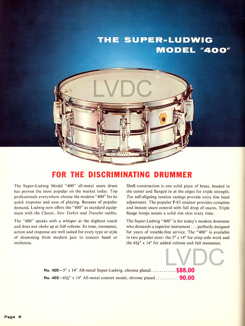1960-63 Ludwig Super-Ludwig 400 Chrome over Brass 14x5"