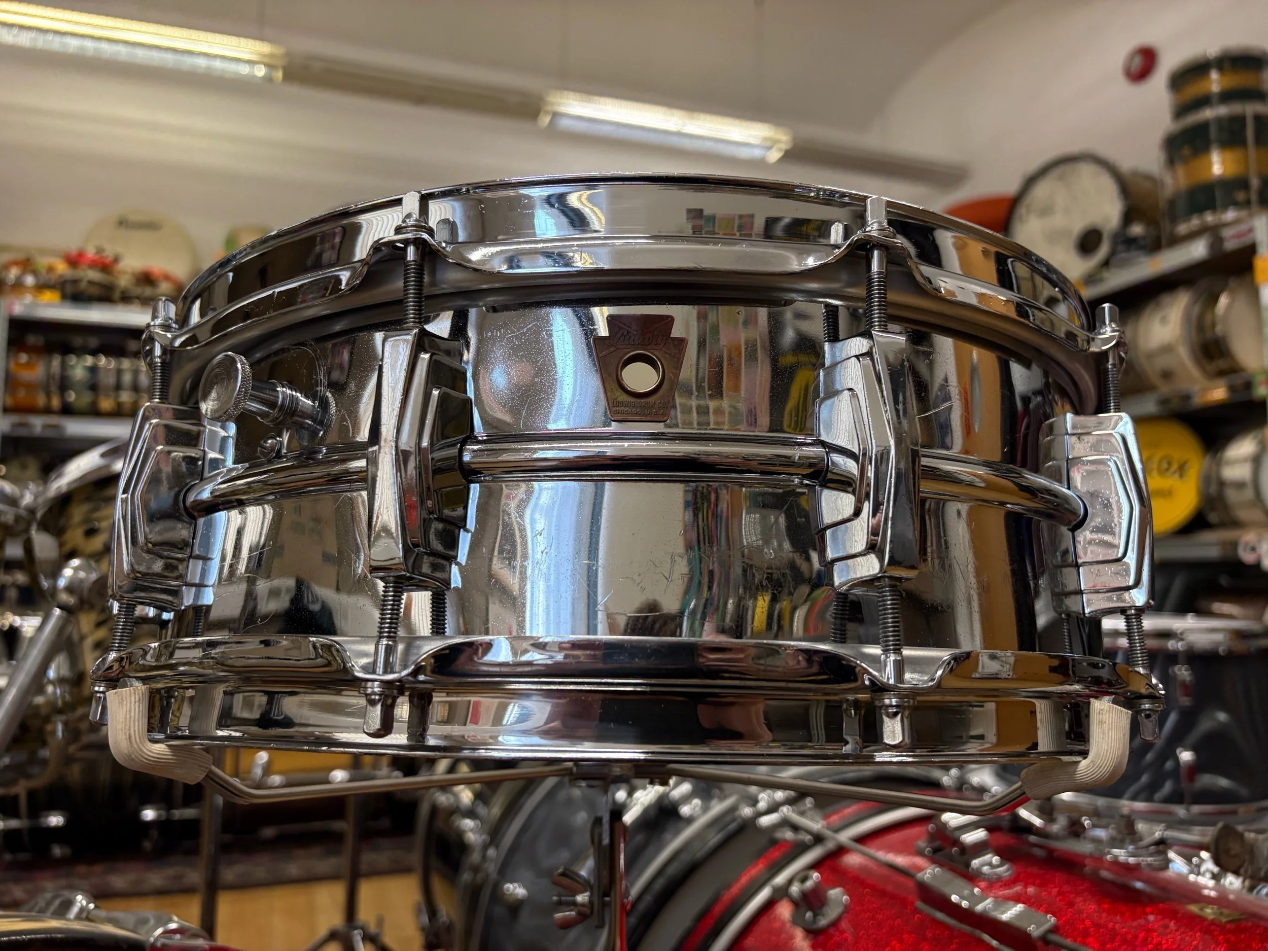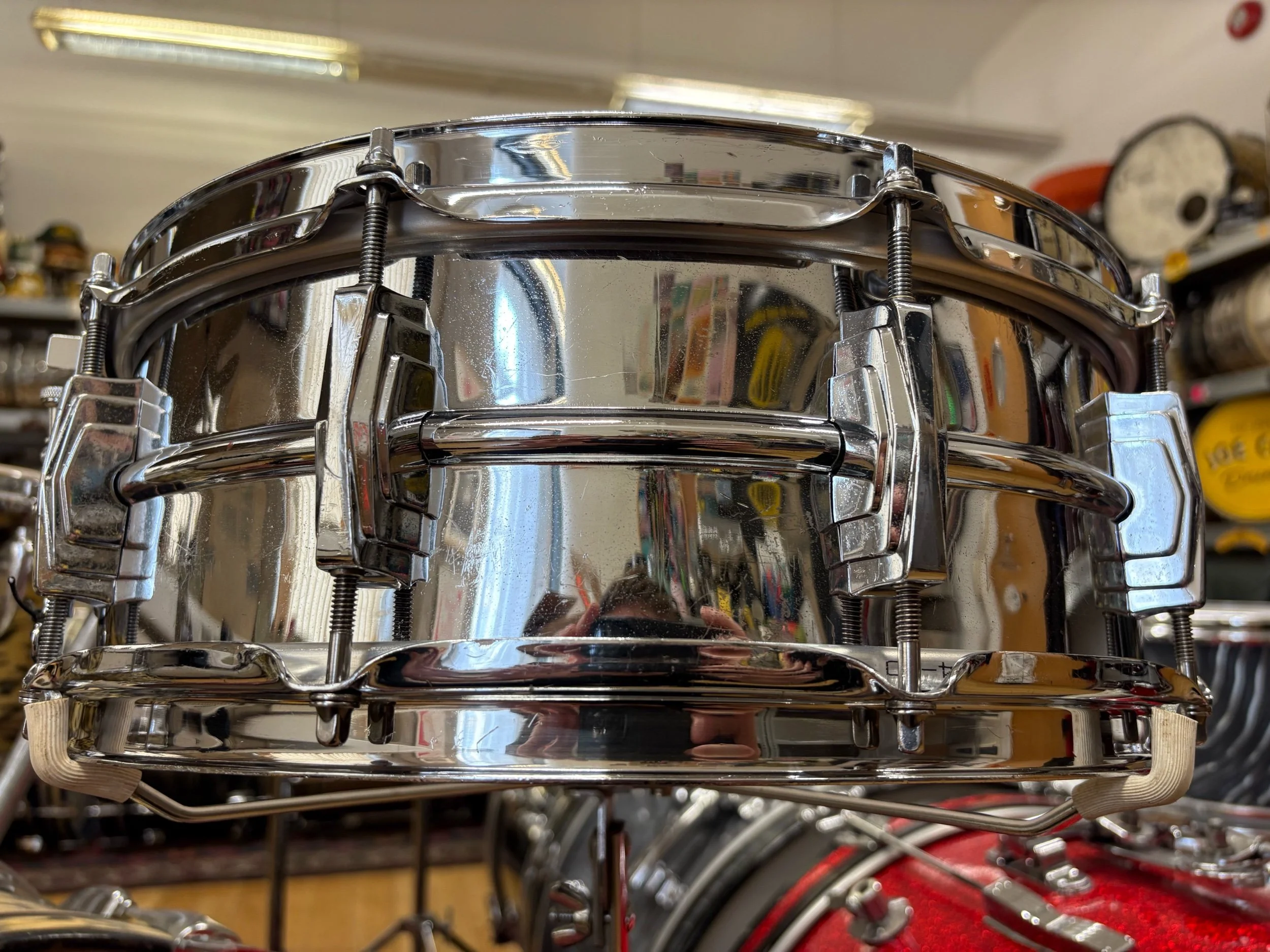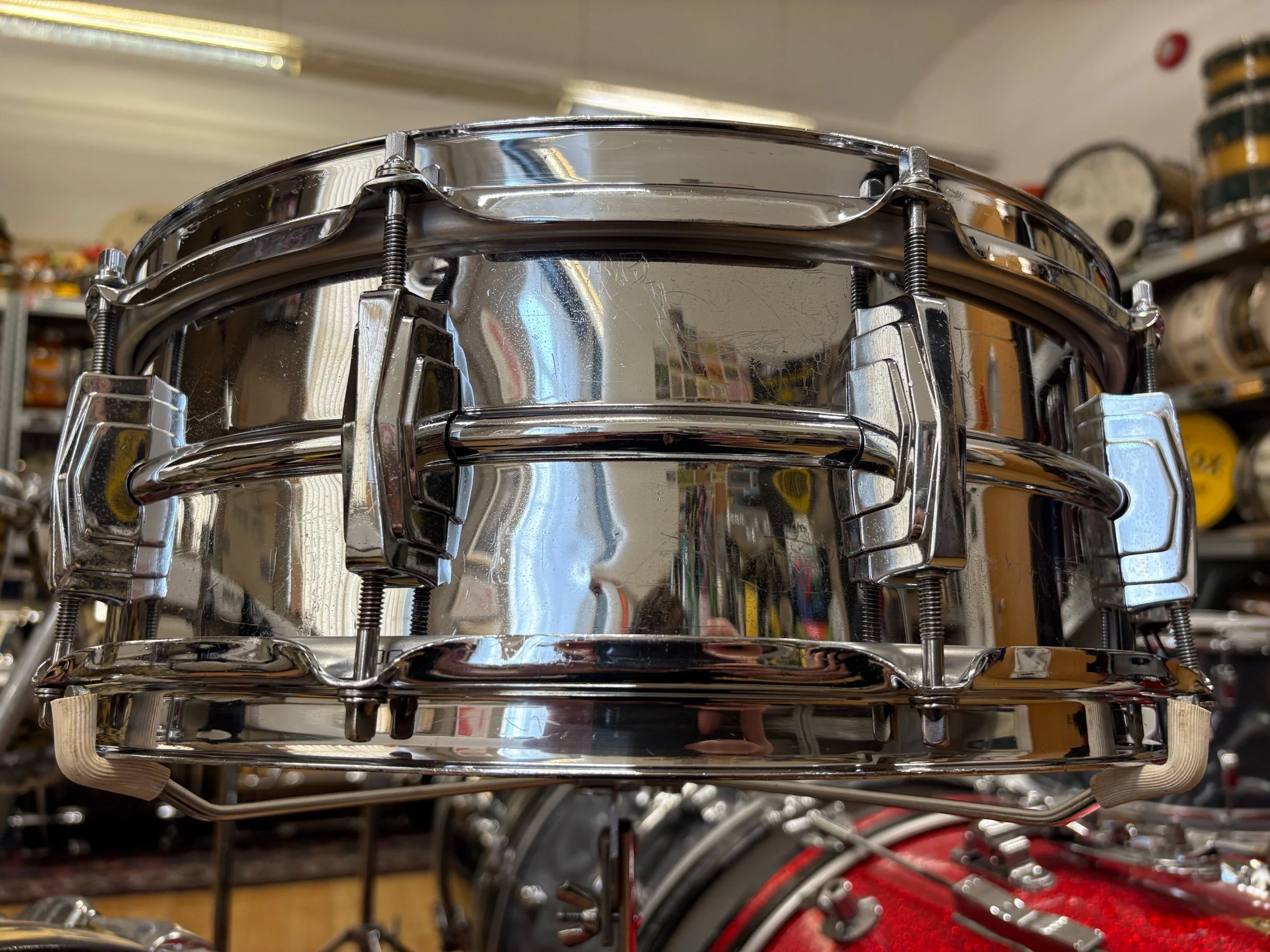 This is the legendary heavy chrome over brass shell with signature crimped snare beds and chrome over brass hoops too!