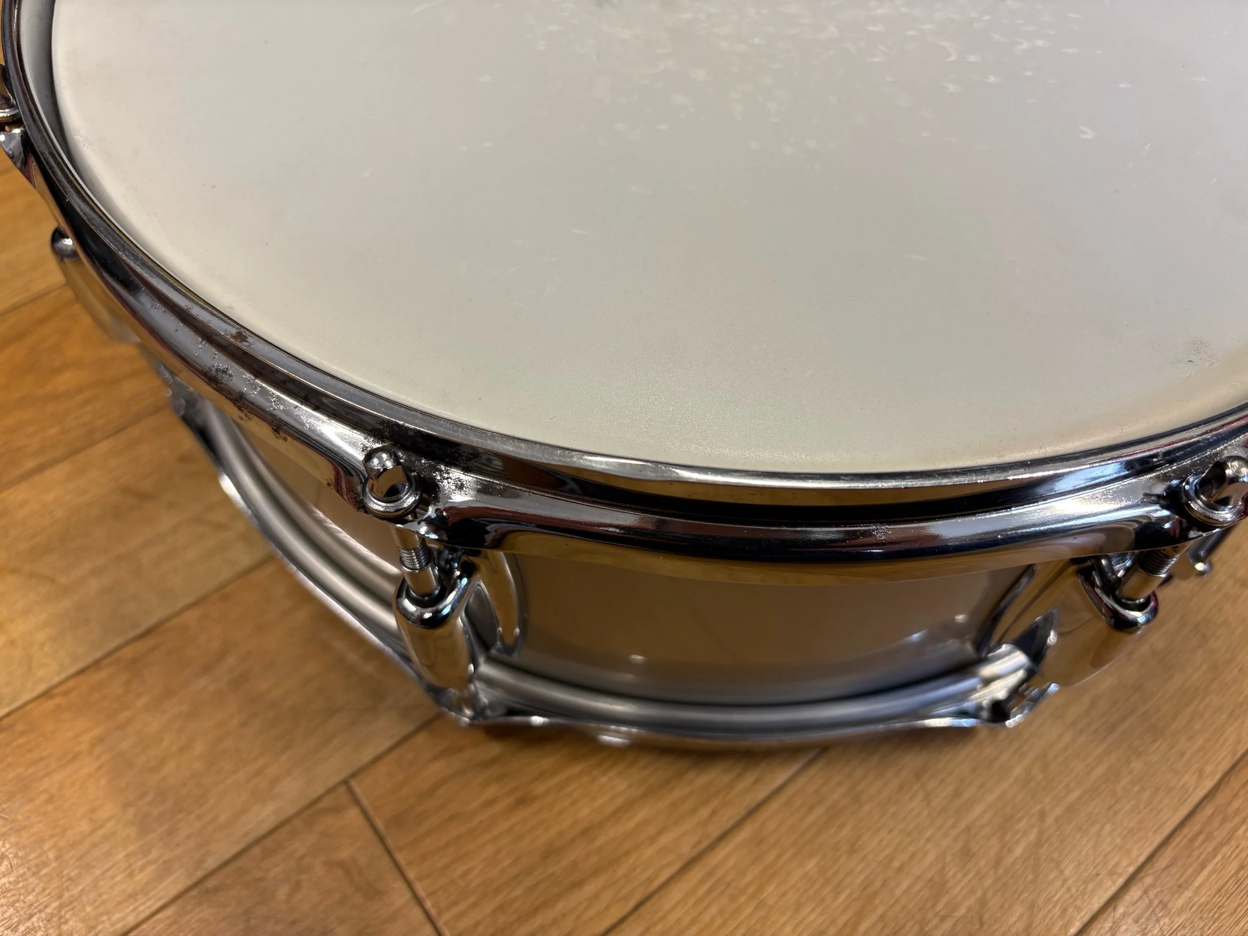Fitted with used Remo Ambassador X and Ambassador Hazy with Pearl snare wires.