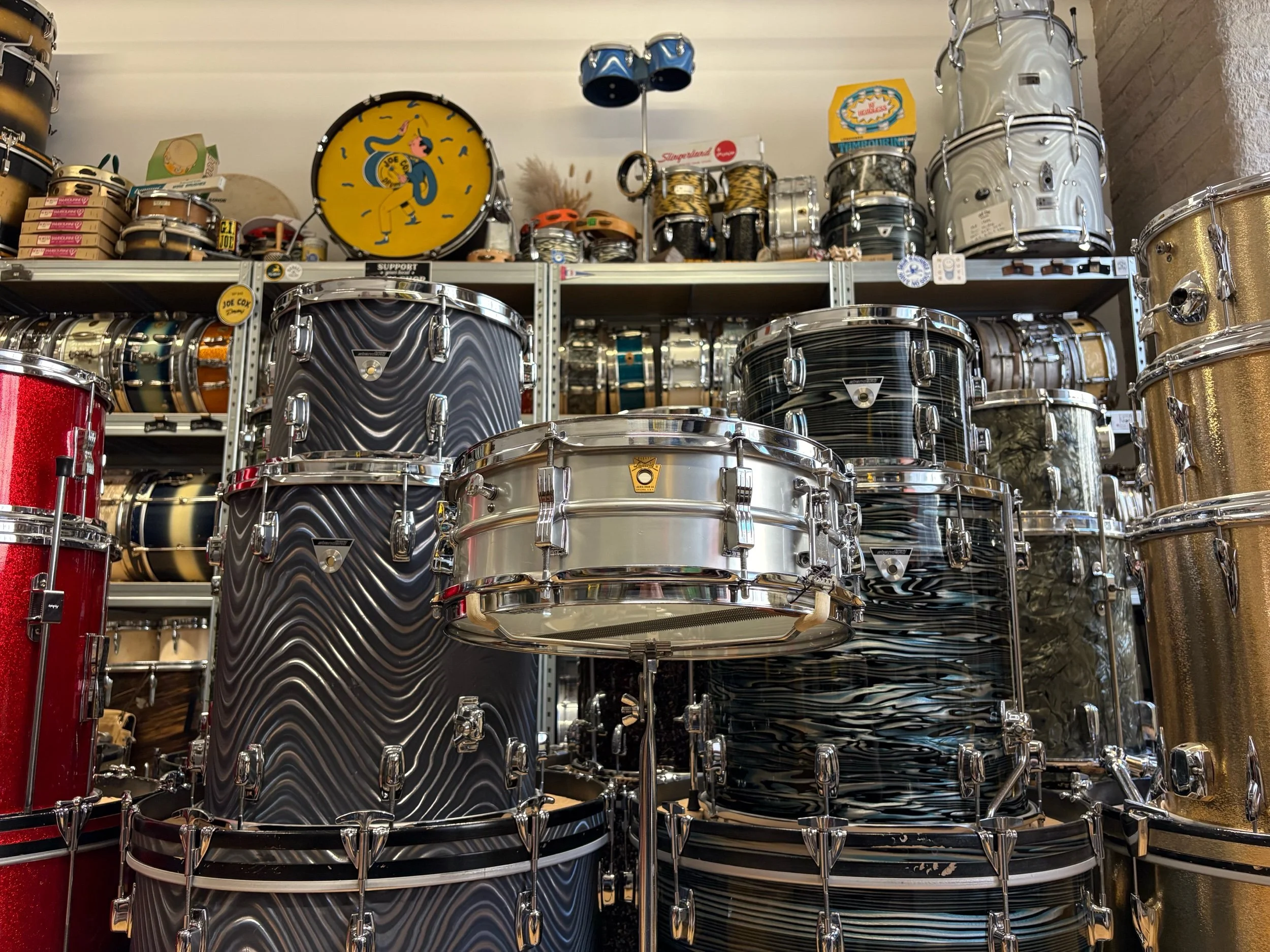 Fitted with brand new Remo Vintage Ambassador Coated and Ambassador snare side heads, with brand new Puresound Custom Pro Steel wires.