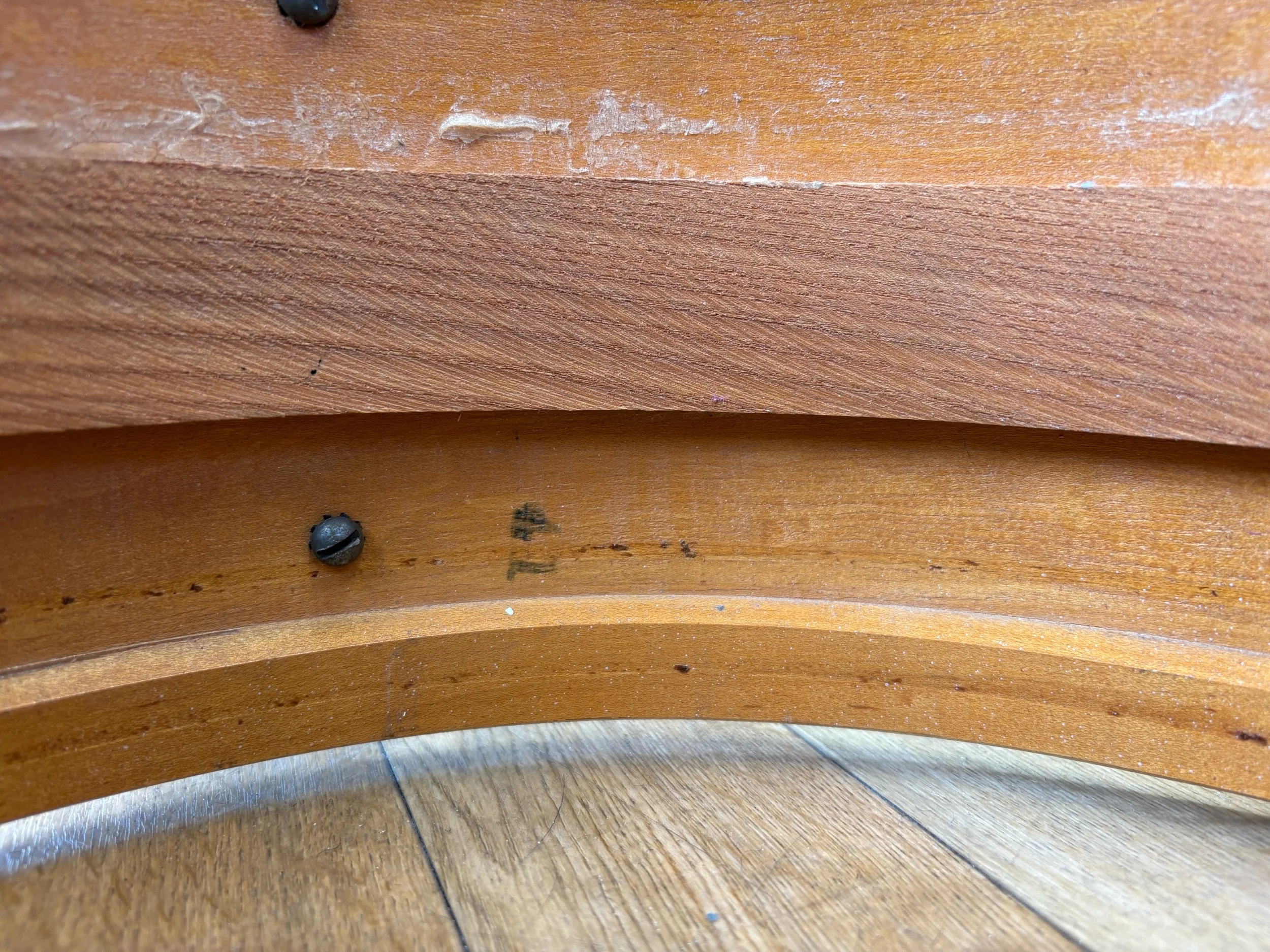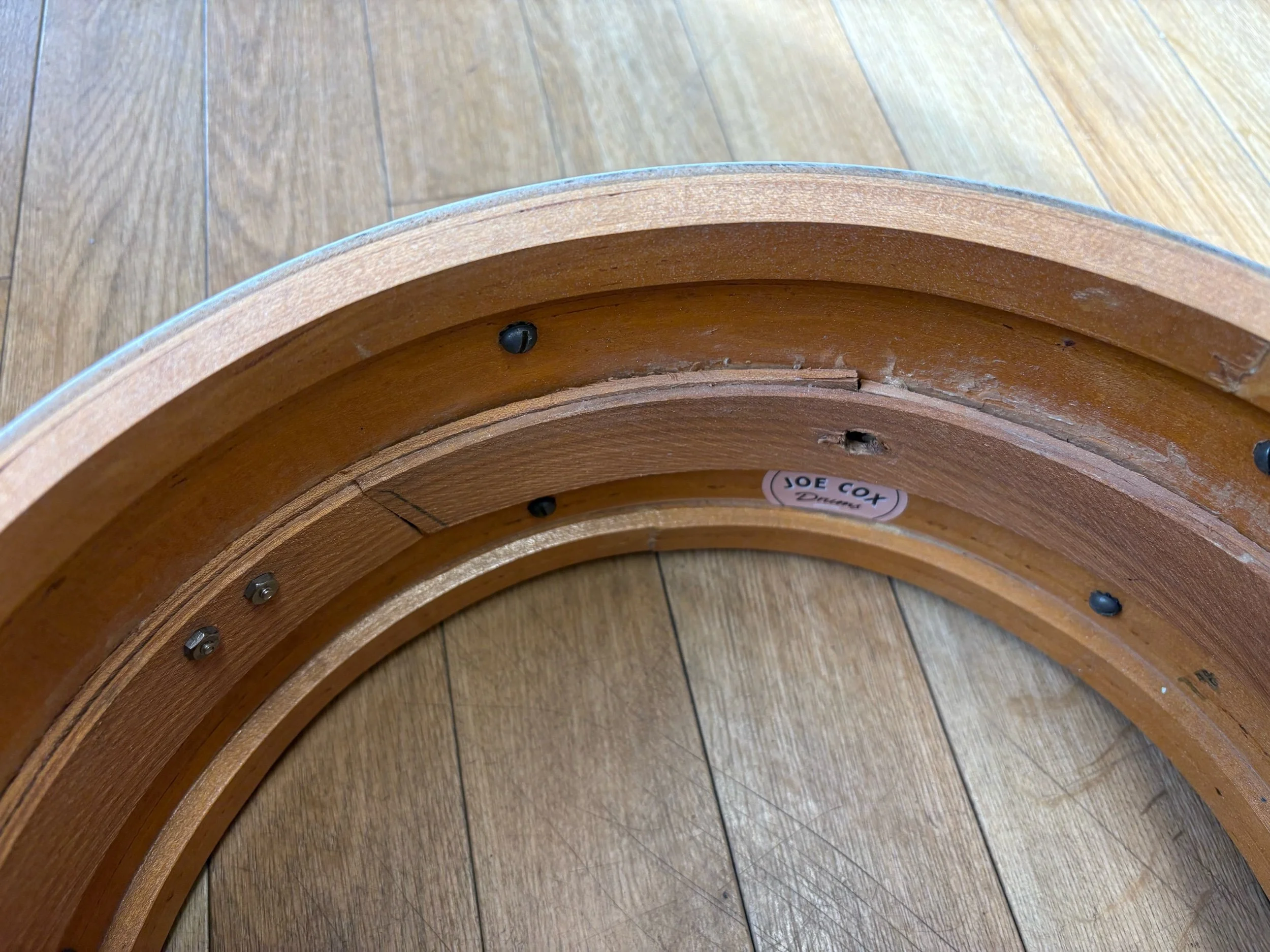 There is some seperation in the original hoops, I think this is from over tensioning old calf heads by a previous owner.
