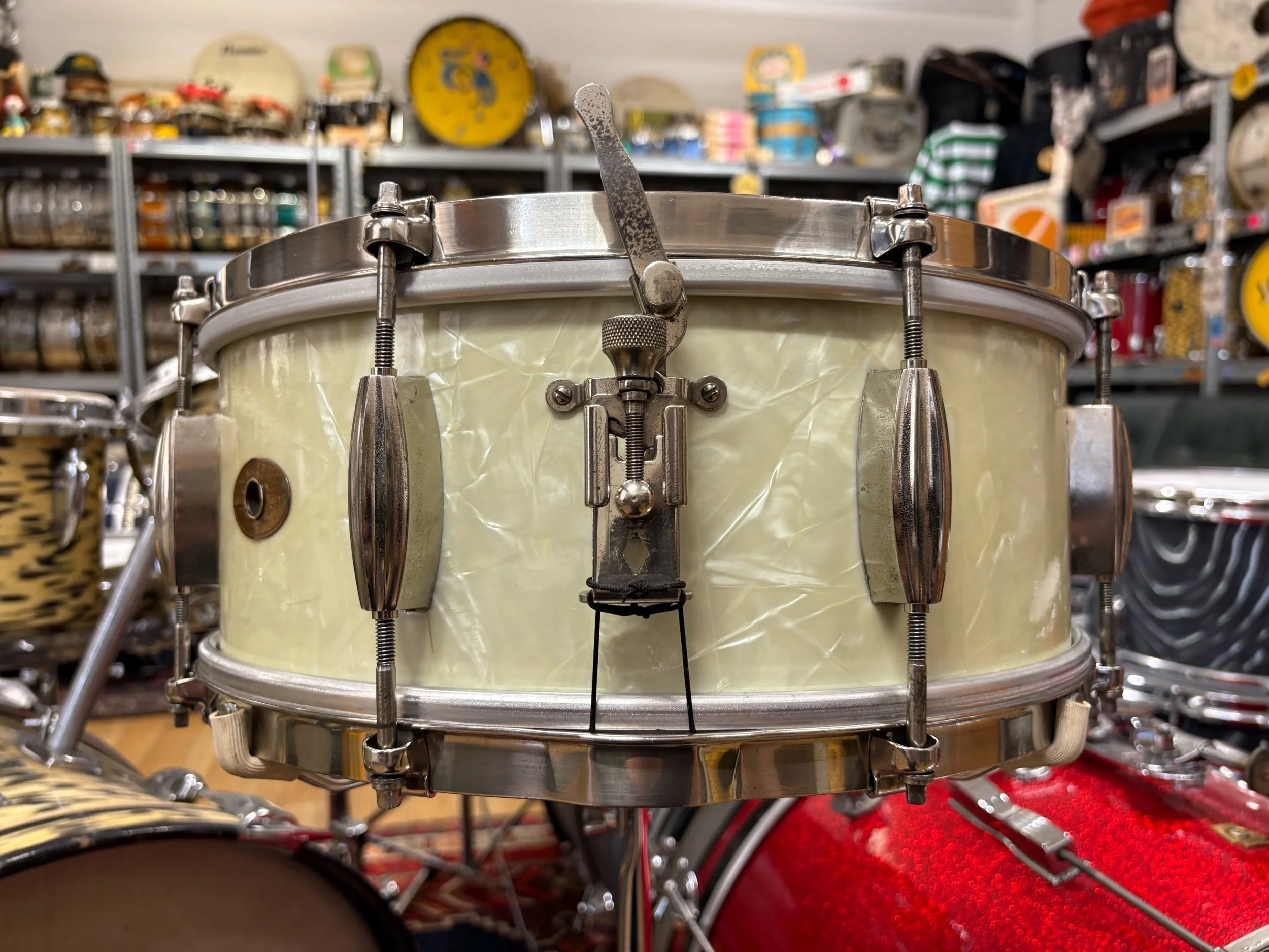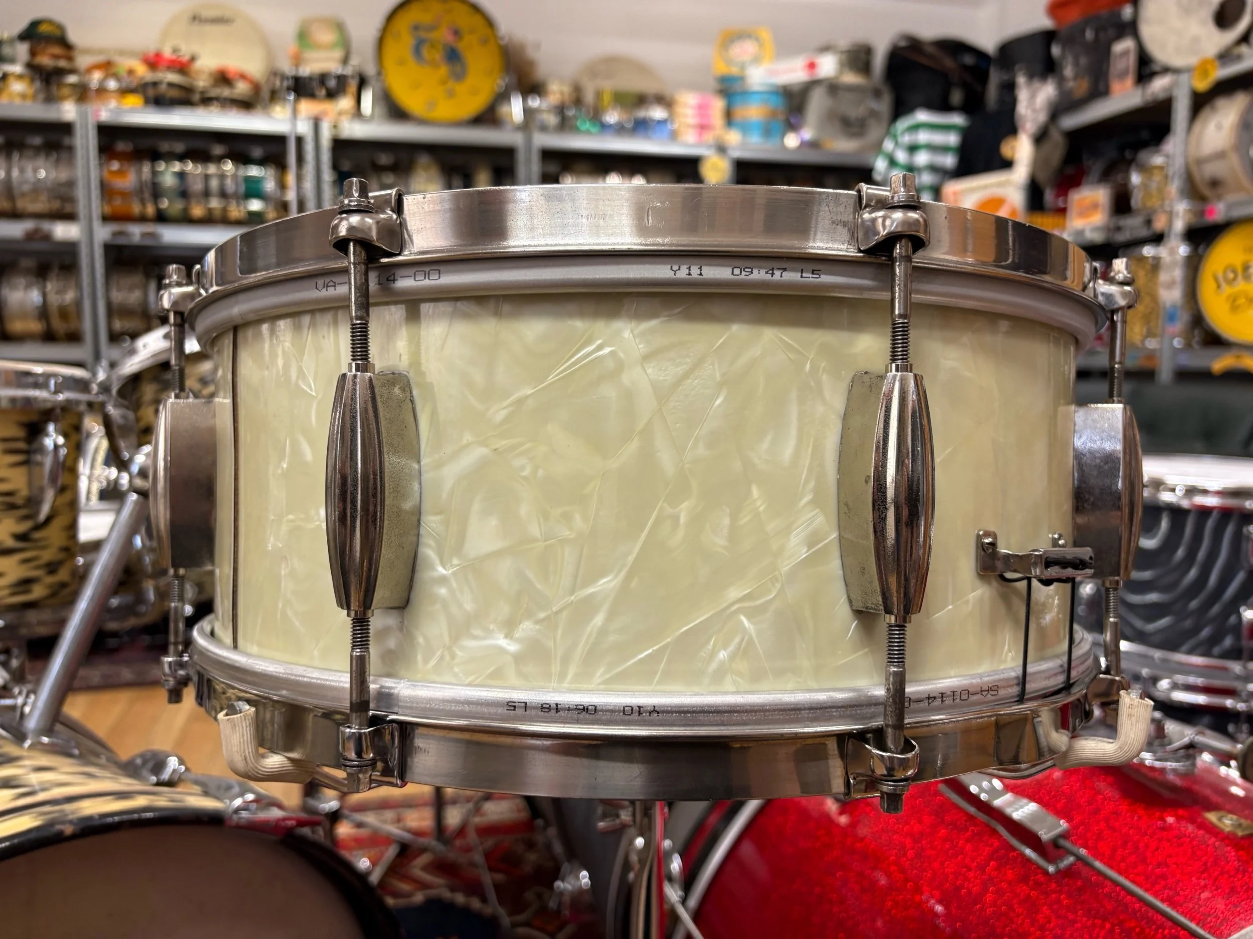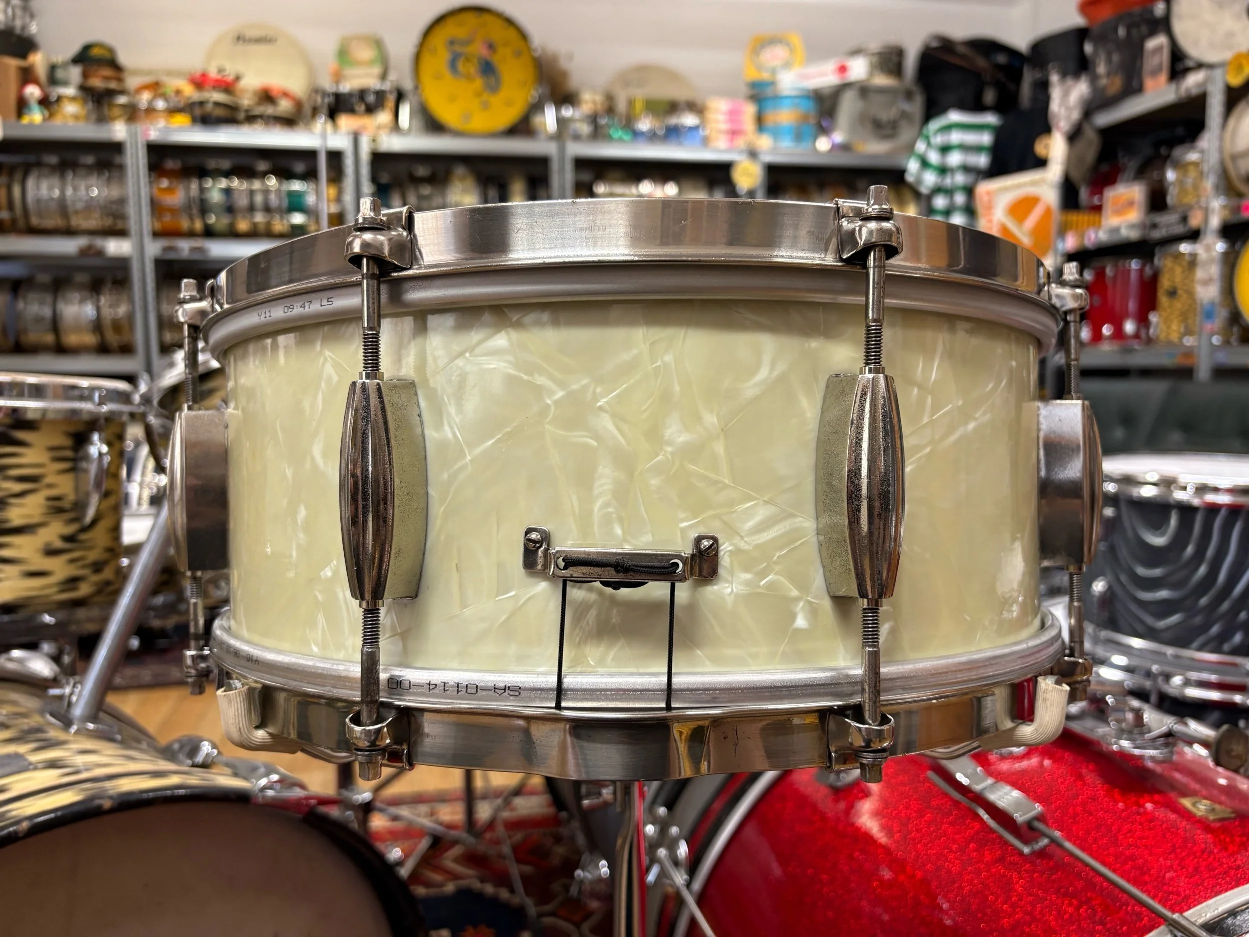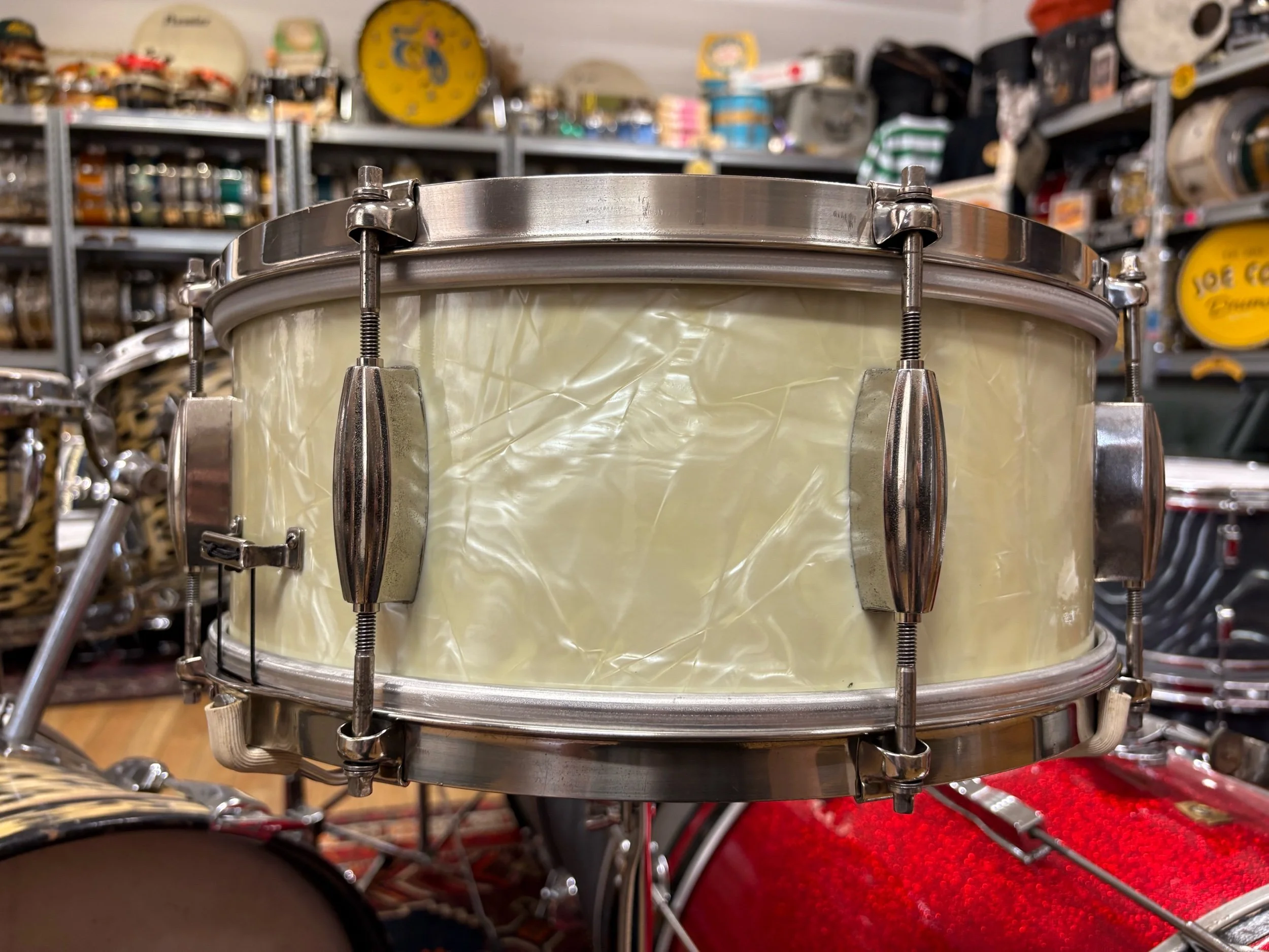Early 1950s Slingerland 'Student Model Radio King' 14x5.5" in White Marine Pearl