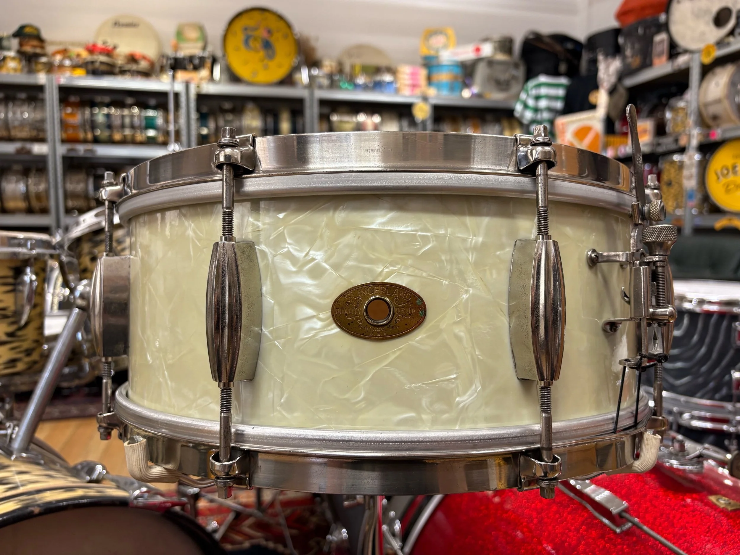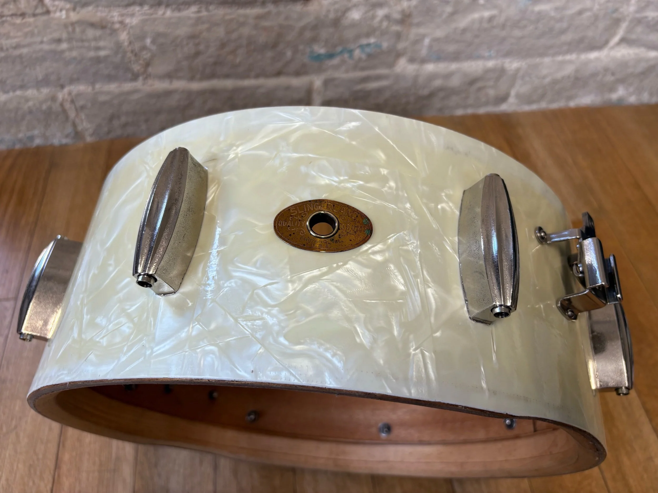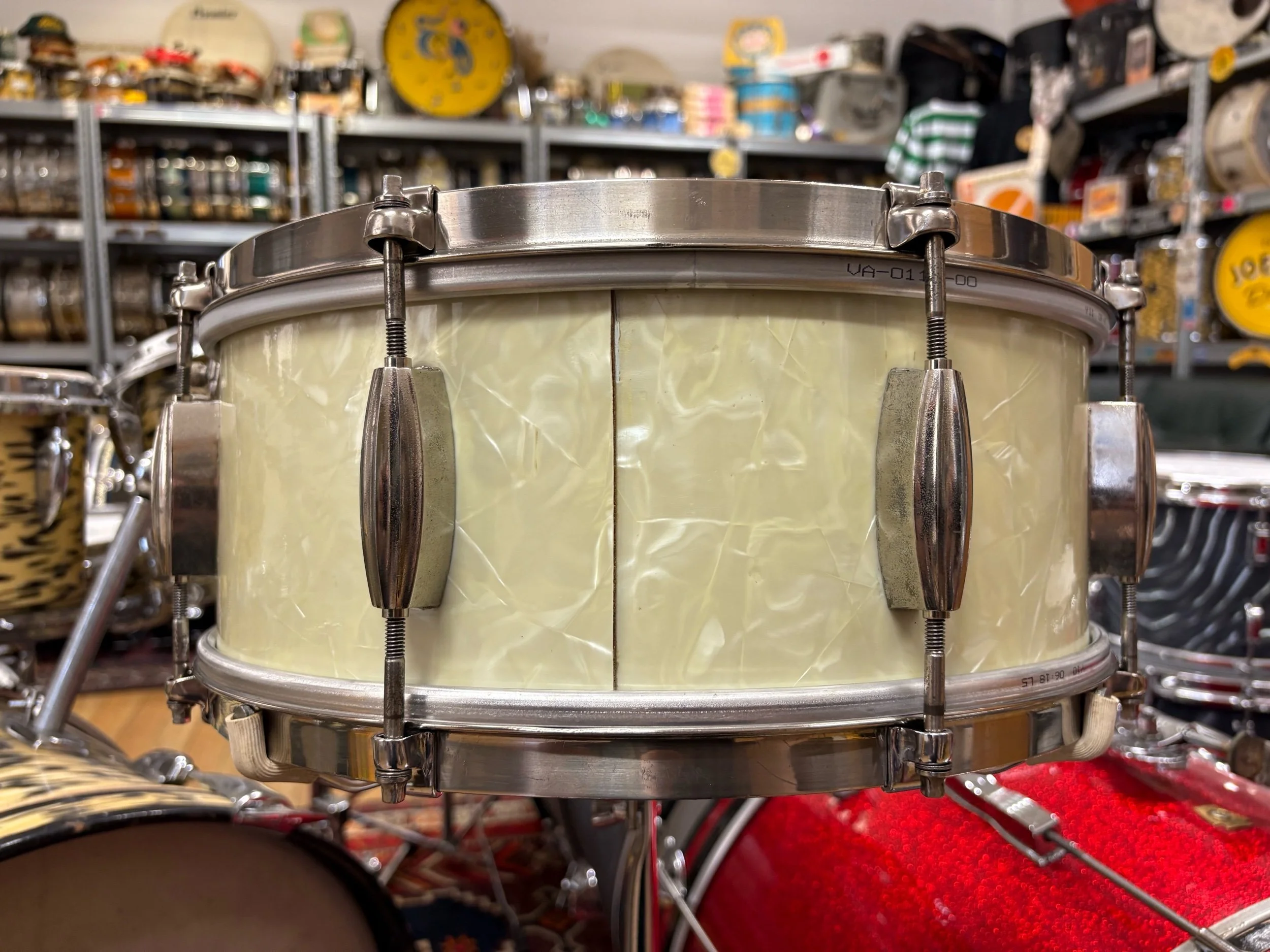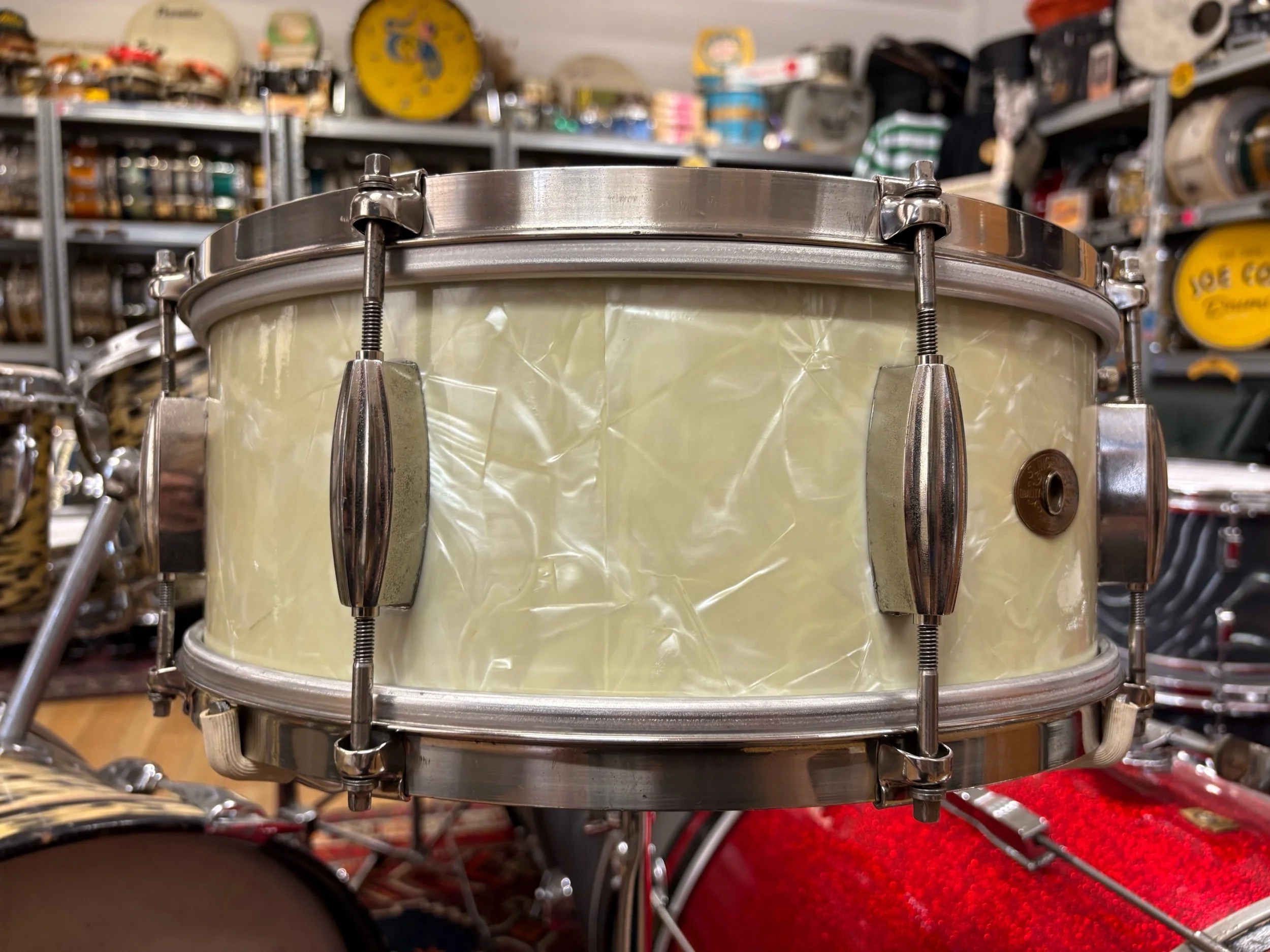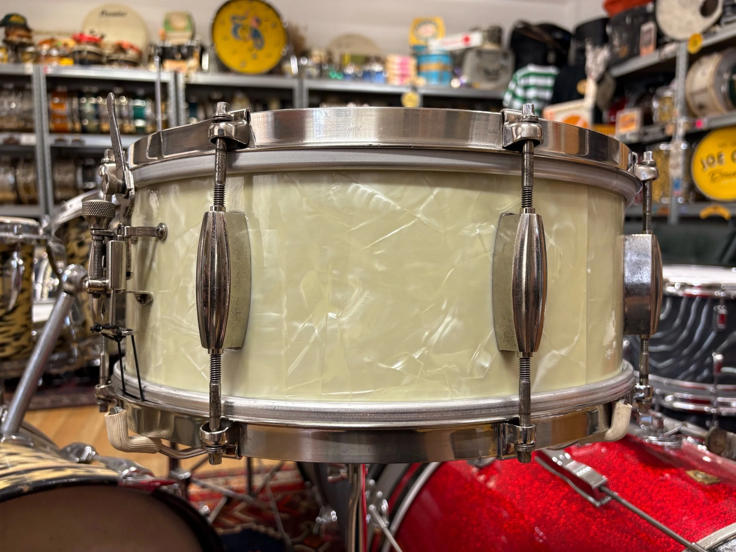 Early 1950s Slingerland 'Student Model Radio King' 14x5.5" in White Marine Pearl