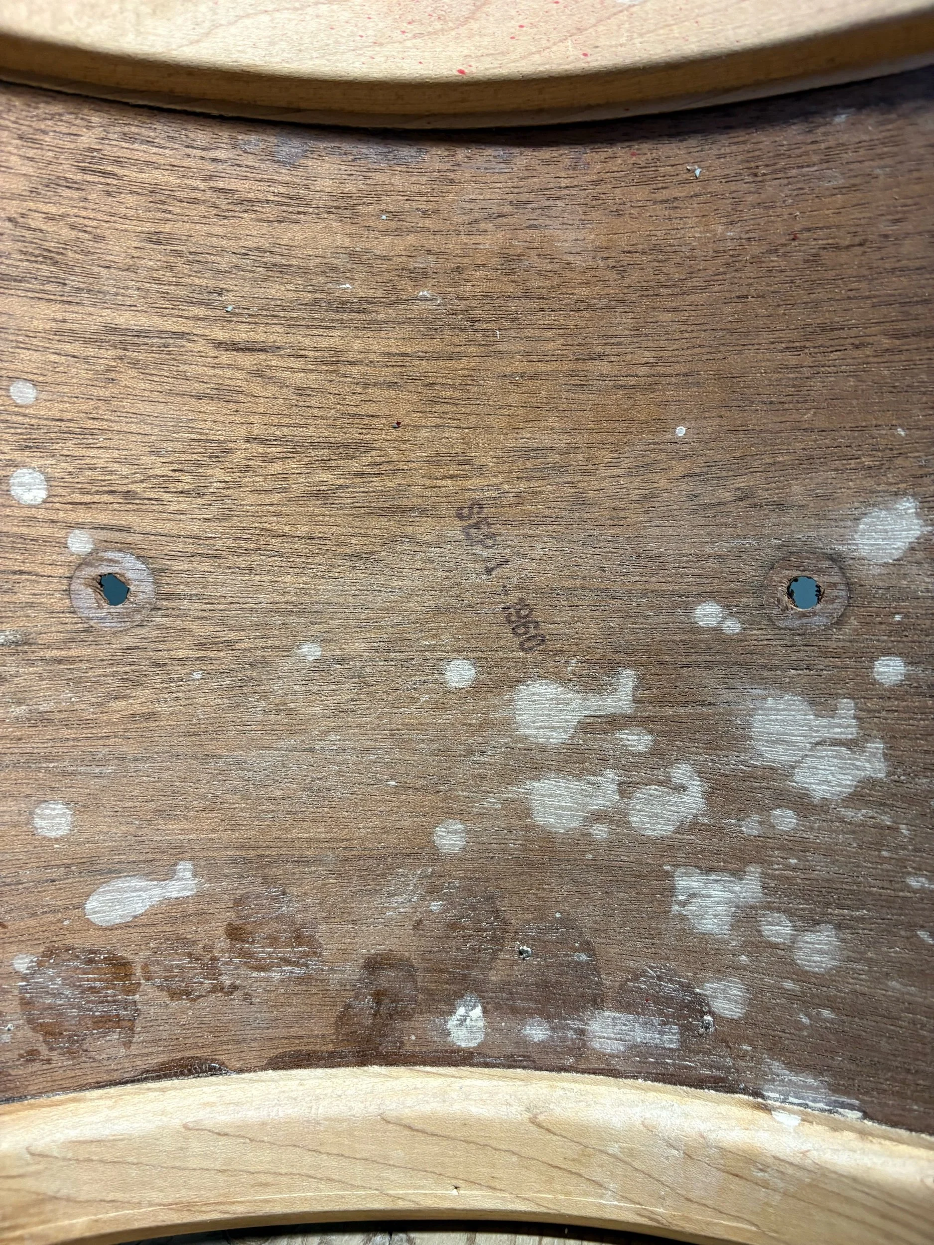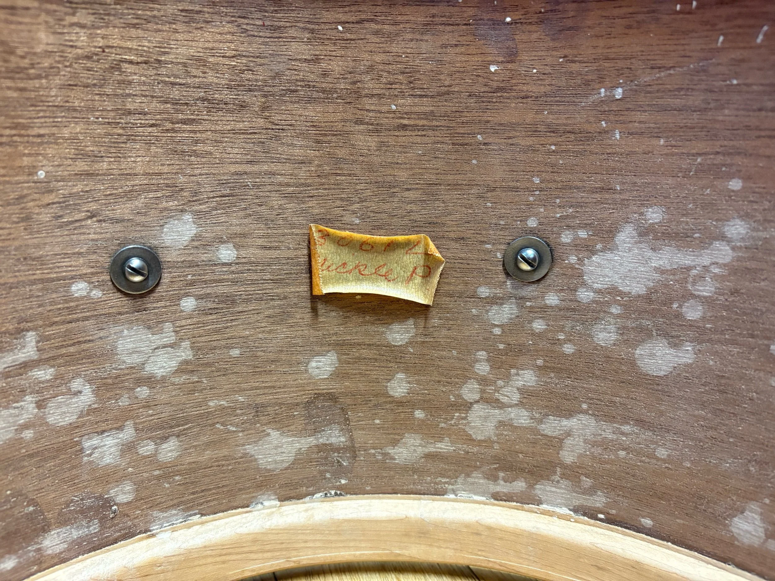 There is what I presume is original paint splatter on the inside of the shell, as well as a paper tag that might've been added from a previous owner.