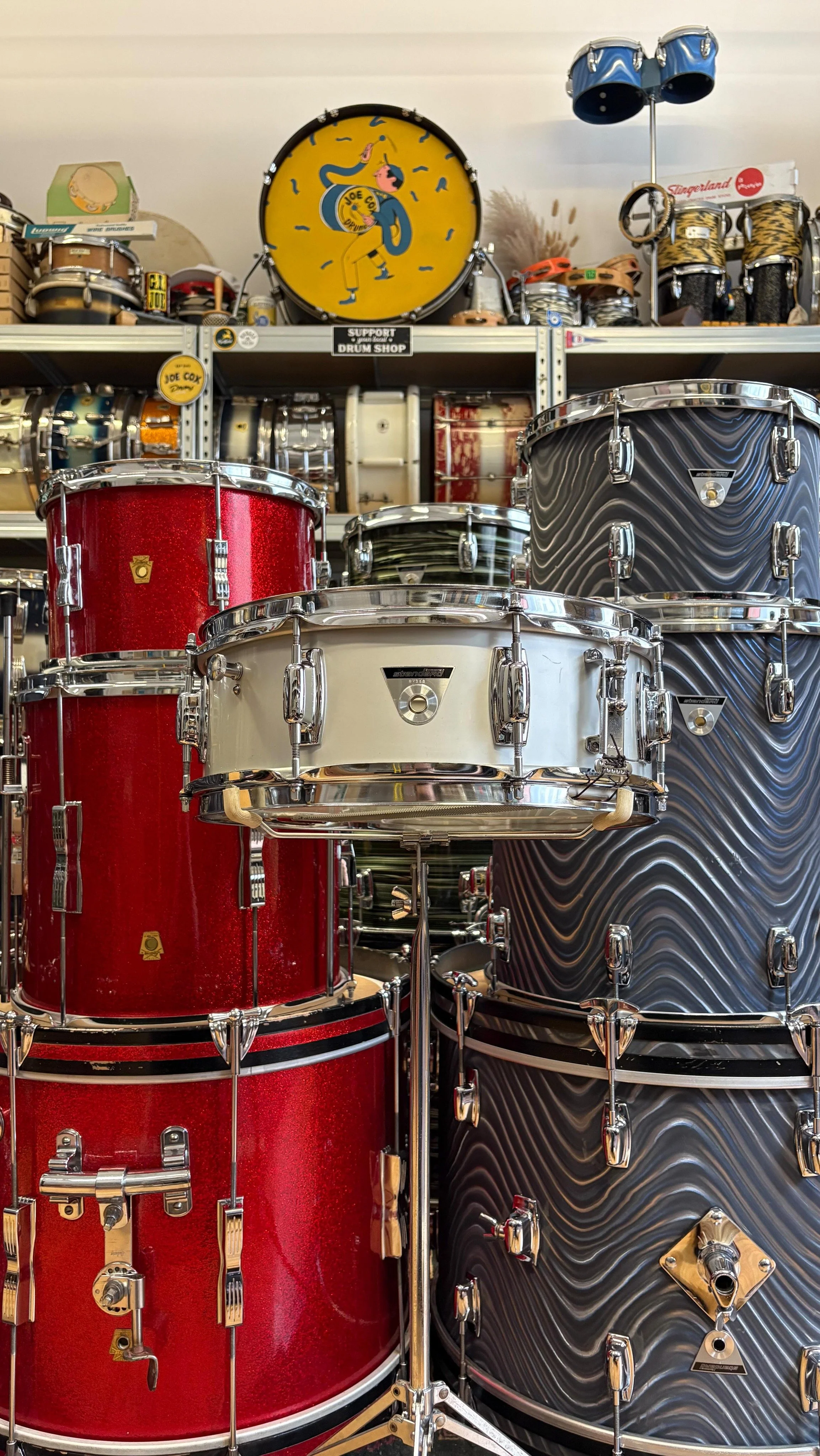 From studying the 1965 catalog, I suspect this is a 'Combo Outfit No. 163' with added 16" floor, or it could also be a 'Shelly Manne Outfit No. 11' with the 13" replaced for a 12". Either way, we’ll never really know, and it honestly doesn’t matter…. it’s an incredible set.